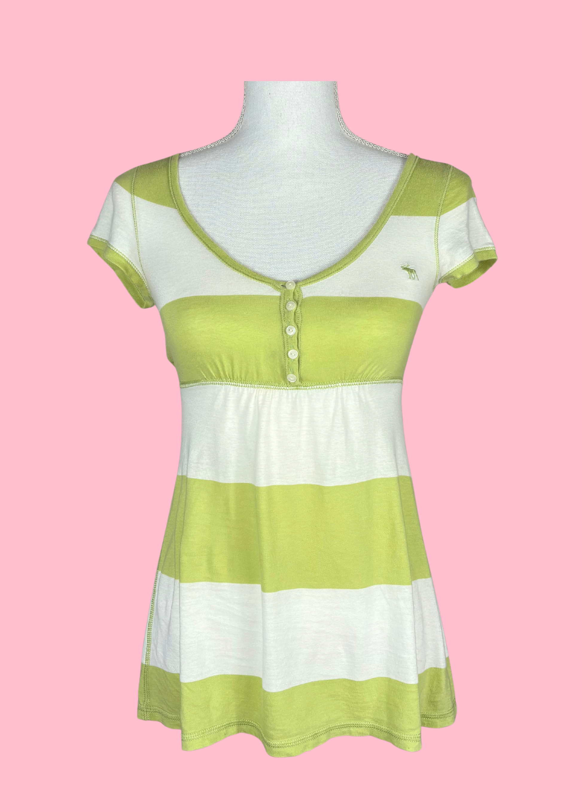 Precioso top babydoll de manga corta de Abercrombie con rayas verdes y blancas.