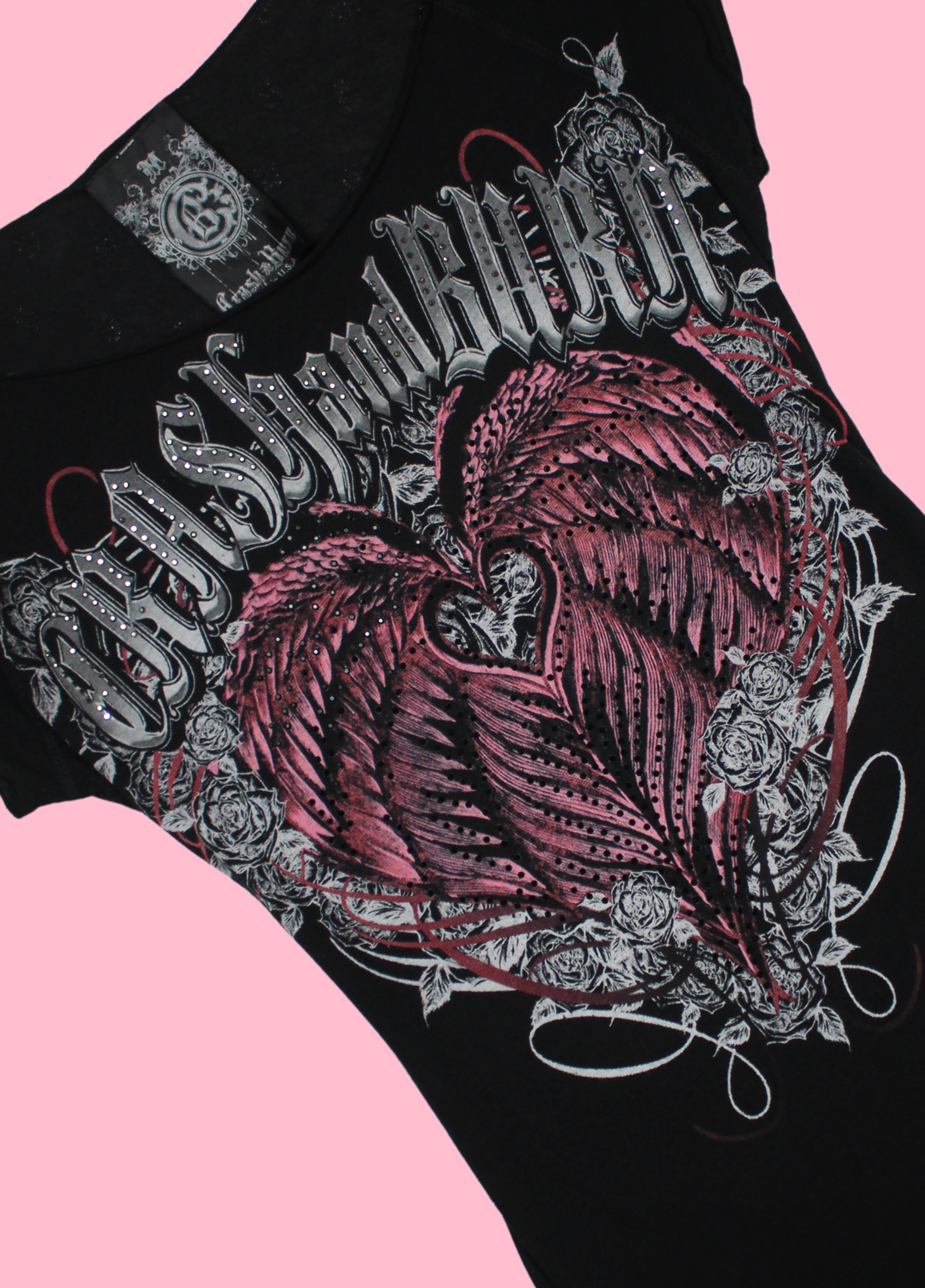 Carinissimo bling/grunge top di Crash and Burn con scritta e abbellimenti.