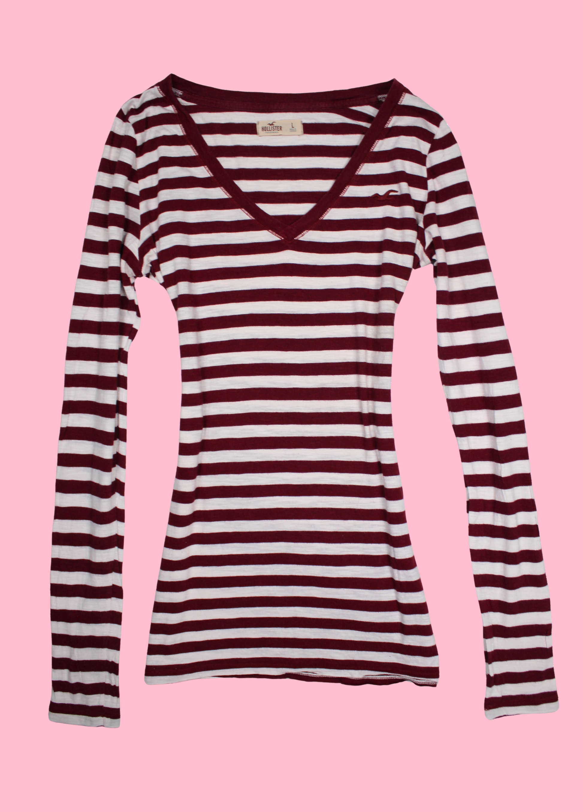 Burgundy Striped Hollister V-neck Top