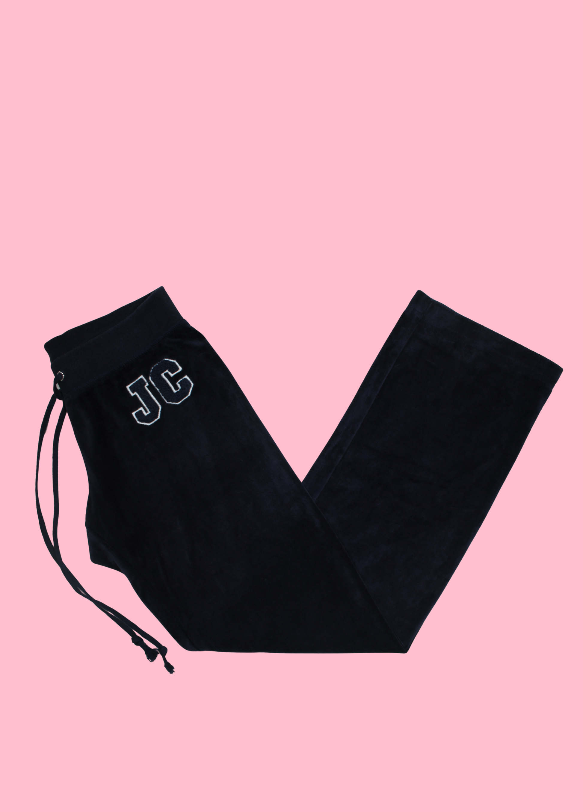 Tuta in velour di Juicy Couture color blu scuro, con abbellimenti su fronte e retro. Perfetta per le queen più basse!💅🏻