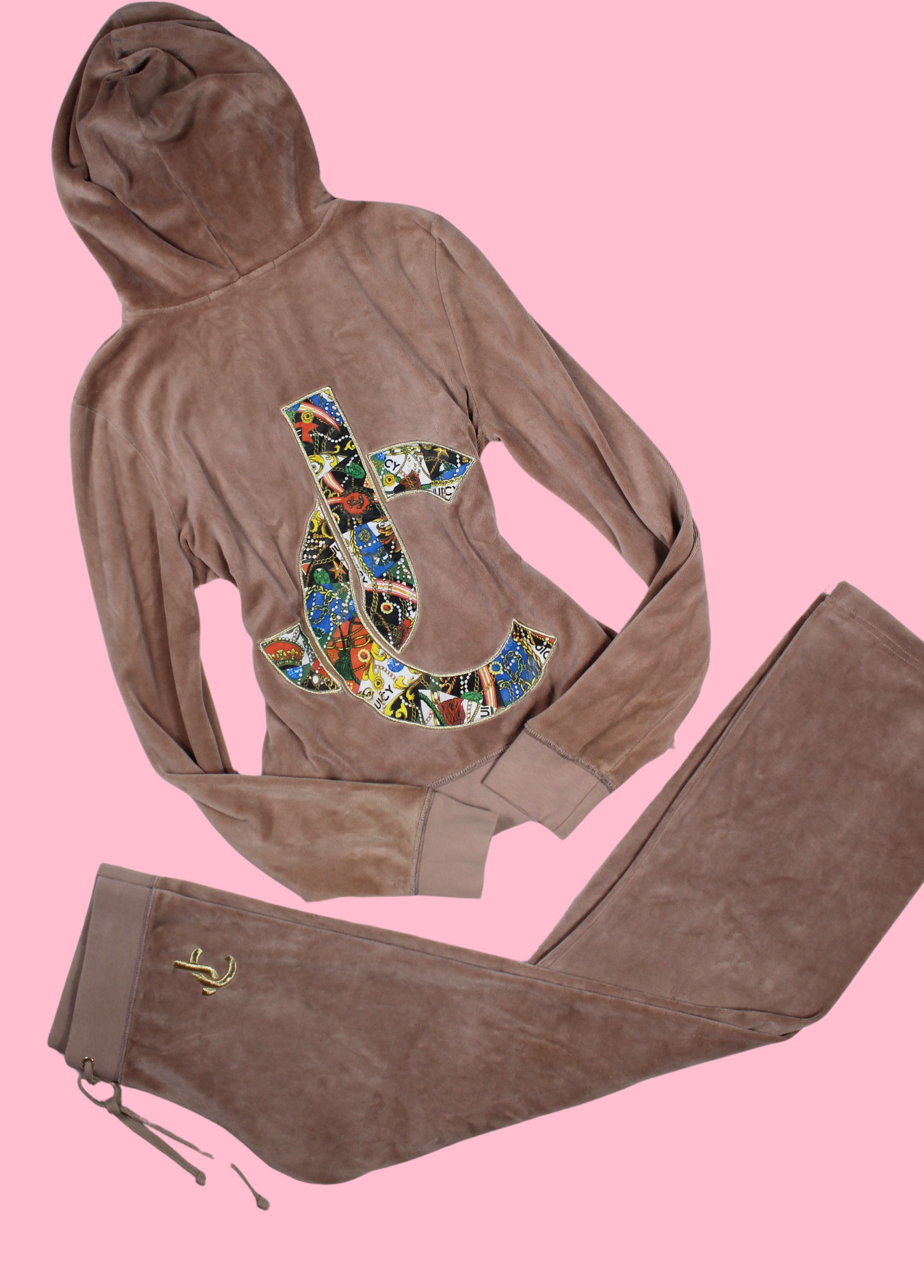 Tuta in velour di Juicy Couture color marrone sabbia.