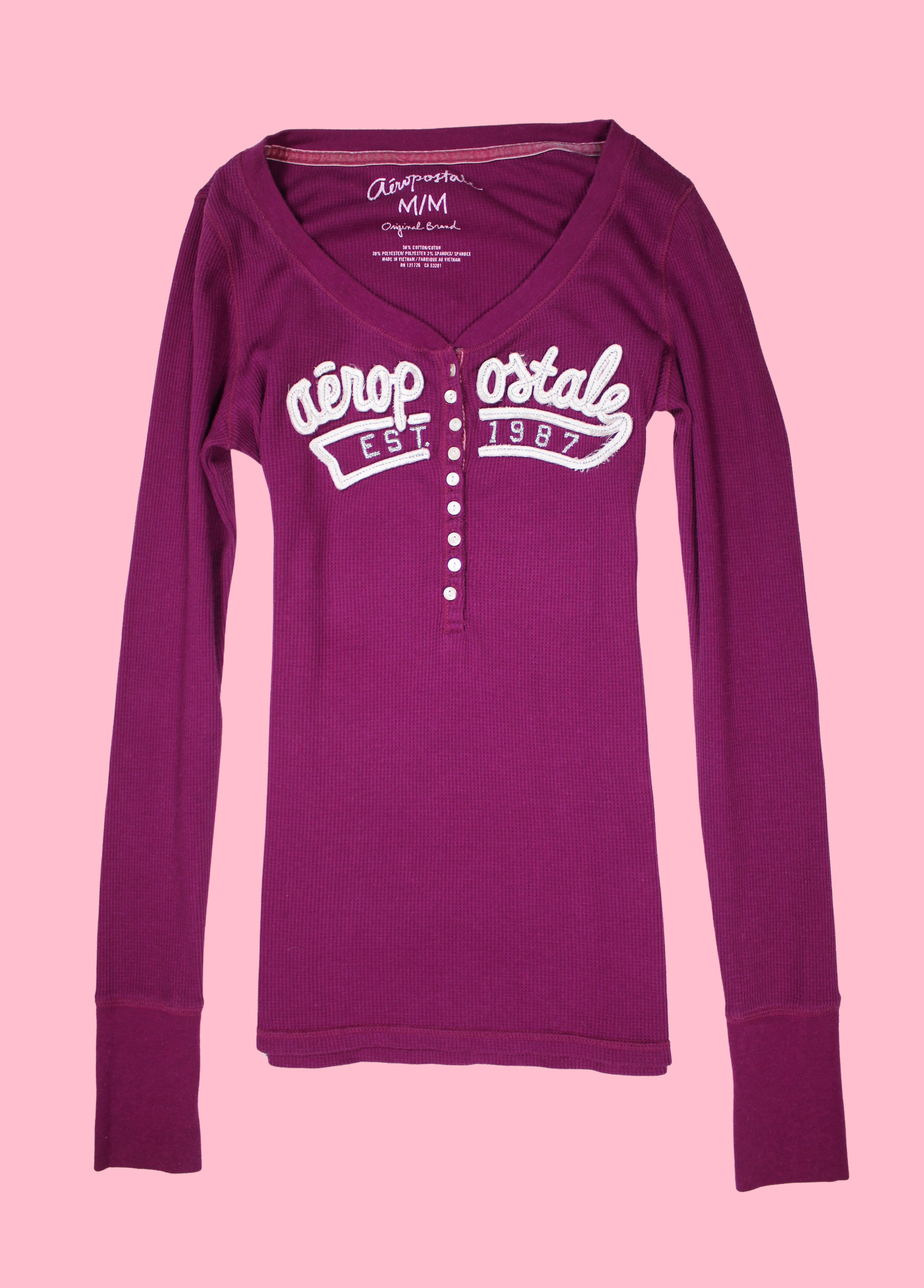 Henley Top di Aéropostale color prugna a maniche lunghe con scritte.